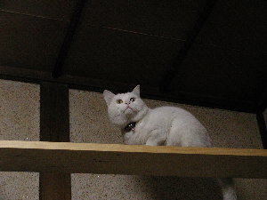 チェリーの奥さんが、カピちゃん、こっちよと言いながら、缶のキャット・フードをそばに持っていってやった。