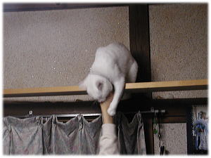 鴨居渡しから、うにゃーん、と呼ぶので、私が顔を出すと、